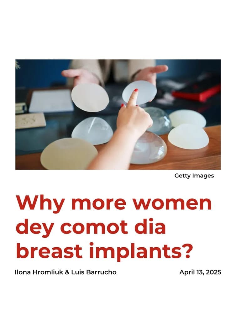 “More women now prefer smaller, more natural-looking breasts. ‘Women want to look different in 2025 than they did five or ten years ago,’ said Dr Kristy Hamilton, of the American Society of Plastic Surgeons (ASPS) and Chair of its Social Media Subcommittee. ‘The implants used in the ’90s and 2000s were often quite large… Smaller breasts overall are now in vogue.’” [translated]