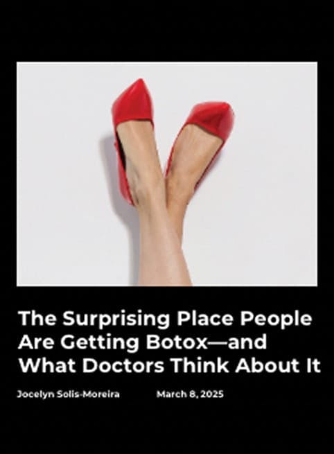 “Stiletto Botox (also known as the high heel lift or ‘foot Botox’) is trending on TikTok for its miraculous ability to make foot pain disappear. The 20-minute procedure is rumored to be why celebrities like Nicole Kidman have been able to walk the red carpet for hours with outrageously high heels. Dr. Kristy Hamilton, MD, FACS… says doctors have been using Botox for years now to treat heel pain… ‘Incidentally, patients also noted that pain from wearing heels subsided after use,’ she adds.”