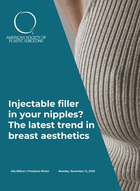 “Kristy Hamilton, MD… noted that not all nipples are the same, which is why this trend is likely seeing a boom. ‘Some women have inverted nipples or tethered nipples, and so when we release these bands that are pulling the nipple in, then it’s very helpful to place something as a spacer so that it doesn’t just scar back down,’ said Dr. Hamilton. ‘In that case, I usually use fat because I do it in the operating room, typically at the time of a lift or reduction.’ Fat [or injectable nipple filler or a cartilage graft] can also be used to give women a more pronounced projection of the nipple, especially if they suffer an inverted or tethered nipple.”