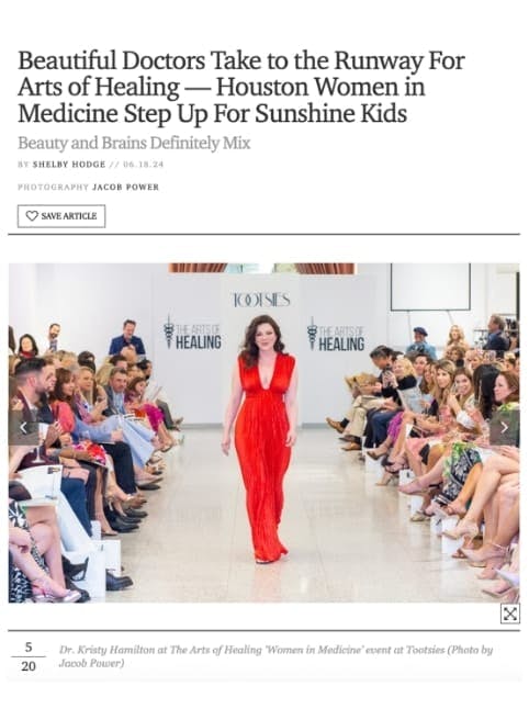 Dr. Hamilton was honored to represent female physicians at the 2024 Women in Medicine Runway Show — in support of The Arts of Healing Foundation, which benefits the Sunshine Kids Foundation.