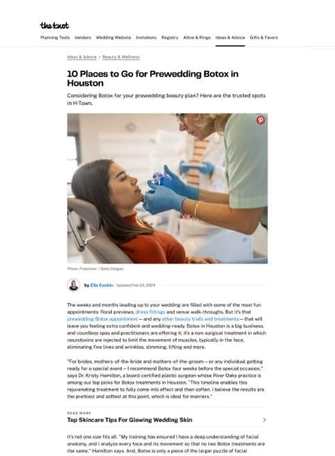 “For brides, mothers-of-the-bride and mothers-of-the-groom—or any individual getting ready for a special event—I recommend Botox four weeks before the special occasion.” says Dr. Kristy Hamilton, a board-certified plastic surgeon whose River Oaks practice is among our top picks for Botox treatments in Houston.”