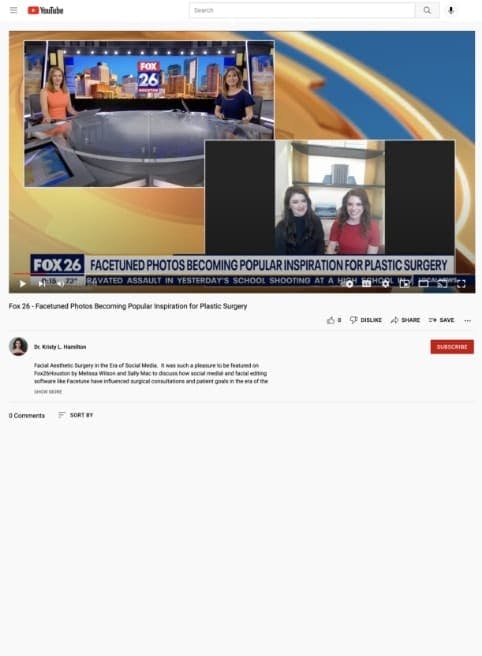 Dr. Hamilton is delighted to have been interviewed by Fox TV, discussing face-and-body positivity as well as how social media and facial-editing software have influenced surgical consultations and patient goals in the era of the “Zoom Boom”.