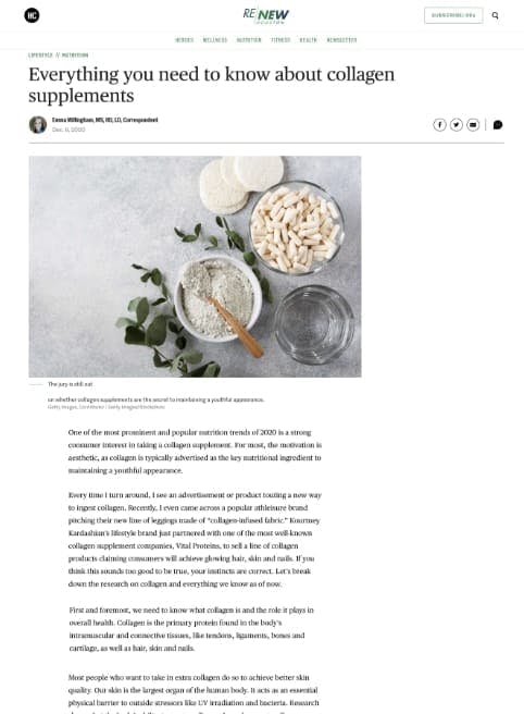 “[A]s long as you eat the rainbow, consume adequate protein sources and have a consistent exercise routine, your body will have all the tools it needs in order to healthfully build collagen.”