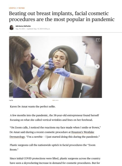 “‘[W]e’ve seen more eye lifts, nose jobs and face-lifts,’ Hamilton said. ‘There has been an explosion in aesthetic procedures surgical and nonsurgical.'”